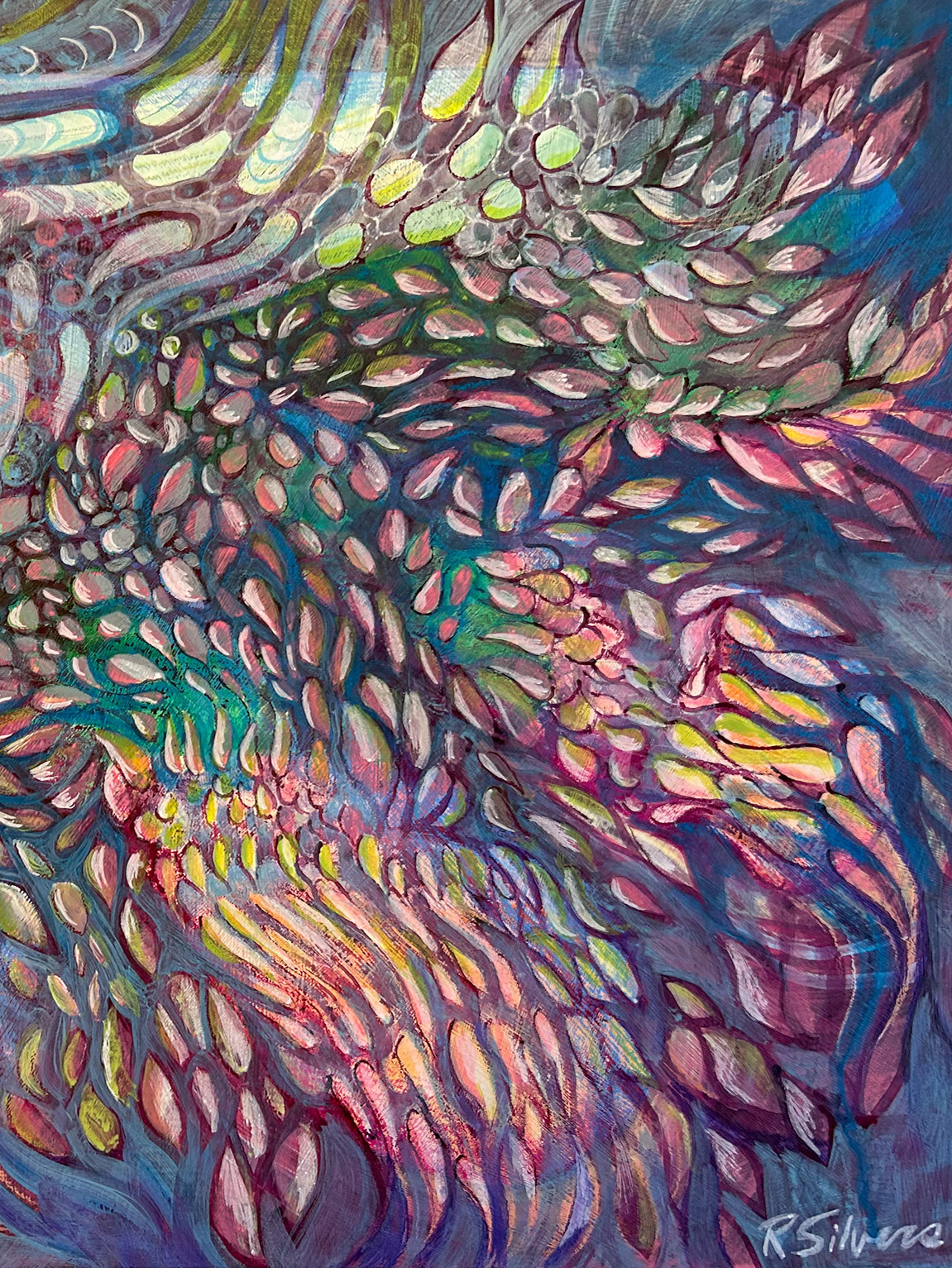 Urchin Mandala, 6" x 6" acrylics on wood panel